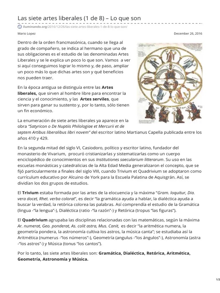 C, marciano capella y se convirtieron en la estructura usual del conocimiento medieval... Artes liberales (trivium y quadrivium) artes liberales (trivium y quadrivium) estas eran las artes que servían como disciplina escolar y académica en la edad media. Este método de enseñanza se basa en un plan de estudios esbozado por platón. En las universidades medievales trivium combinado con el quadrivium comprendía las siete artes liberales. 09.08.2017 · las artes liberales las artes liberales nacieron en el mundo antiguo, siendo codificadas como tales por autores de la antigüedad como varrón o, en el siglo v d.. Durante la edad media se dividían las ciencias en dos partes designadas con los nombres de trivium, y quadrivium.